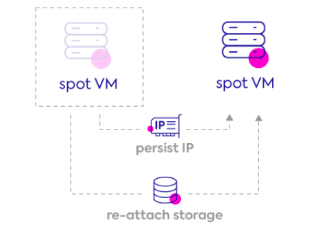- Take Snapshot: Periodic snapshots of the data disk are taken while the VM is running. Upon VM replacement, a new disk is created from the latest snapshot and is attached to the new VM.